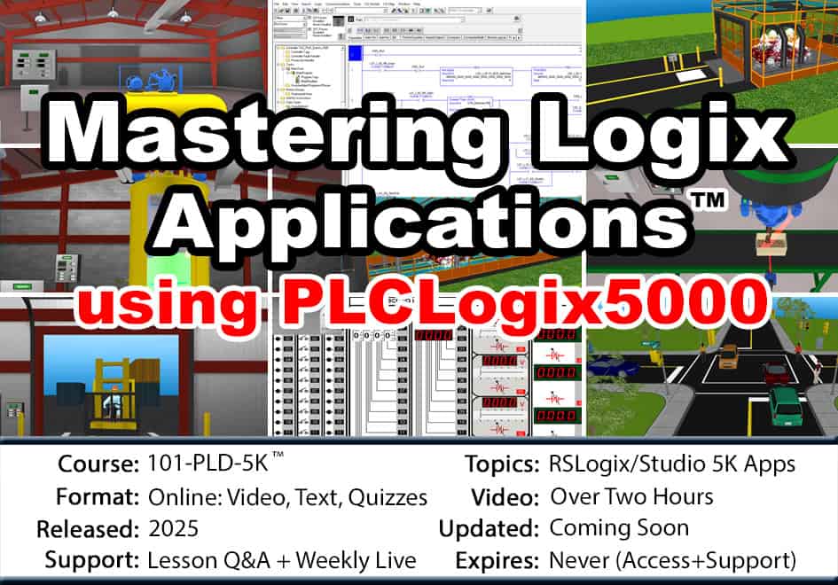 Become a master at solving ControlLogix and CompactLogix applications without having to buy thousands of dollars of equipment and software by taking our NEW 2025 Mastering Logix Applications using PLCLogix 5000 simulation software.