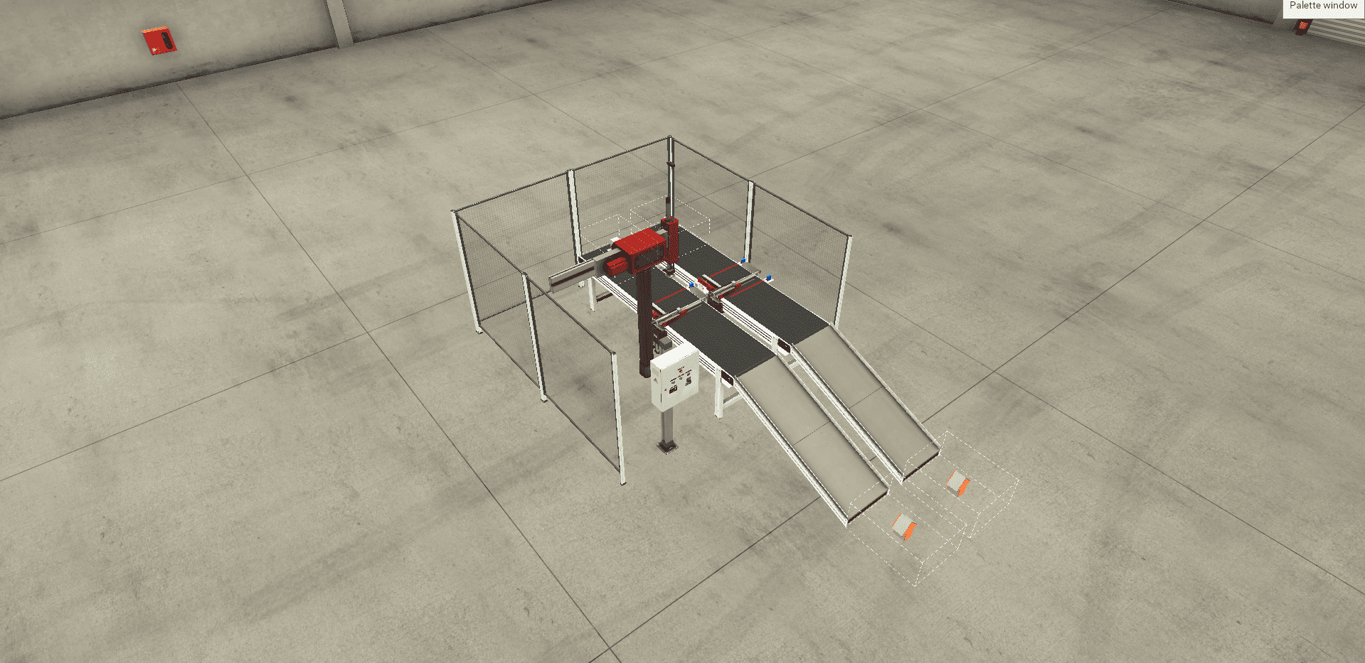 Library of industrial parts: Create a virtual factory using a library of industrial parts, including sensors, conveyors, elevators, stations, and many others.