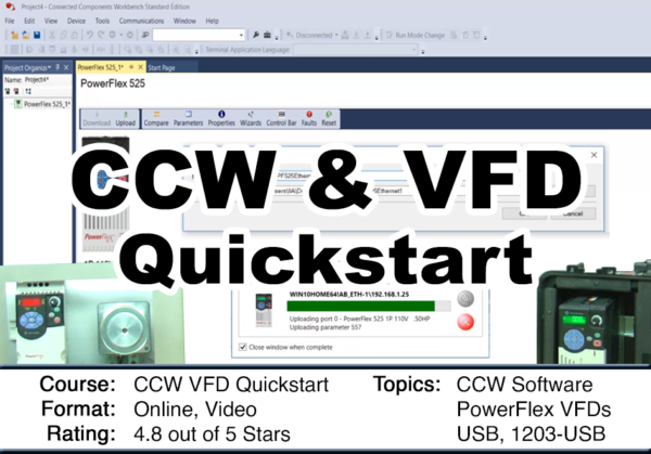 CCW VFD Quickstart is the perfect online course for electricians, technicians, and engineers who want to learn to use Connected Component Workbench (CCW) with Allen-Bradley Drives. Taught by a factory certified automation specialist with over thirty years of experience, in this course you will learn everything you need to know to get started using CCW with VFDs with confidence.